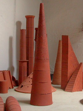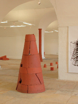 Atelierecke mit Säulen, Kegeln und Dreiecken im Hintergrund